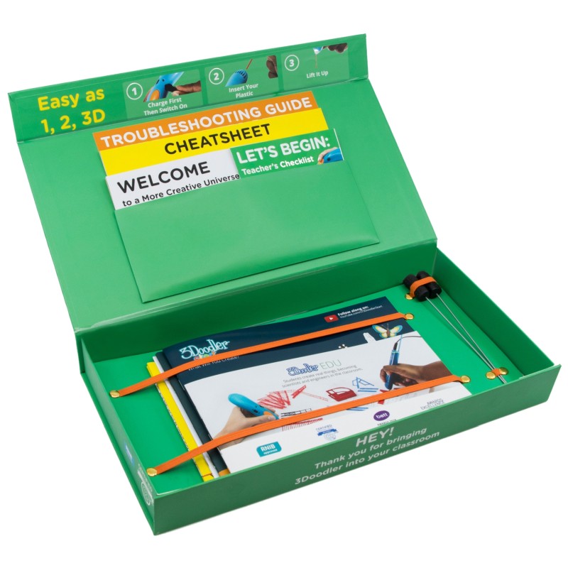 The Teacher's Kit included in the 3Doodler EDU Start+ Learning Pack provides all the necessary materials for effective lessons. It includes a checklist, lesson guides, EDU booklet, DoodleBlock guide, instructions and support materials - ready to implement right out of the box. This gives teachers time and a tool to creatively engage students.