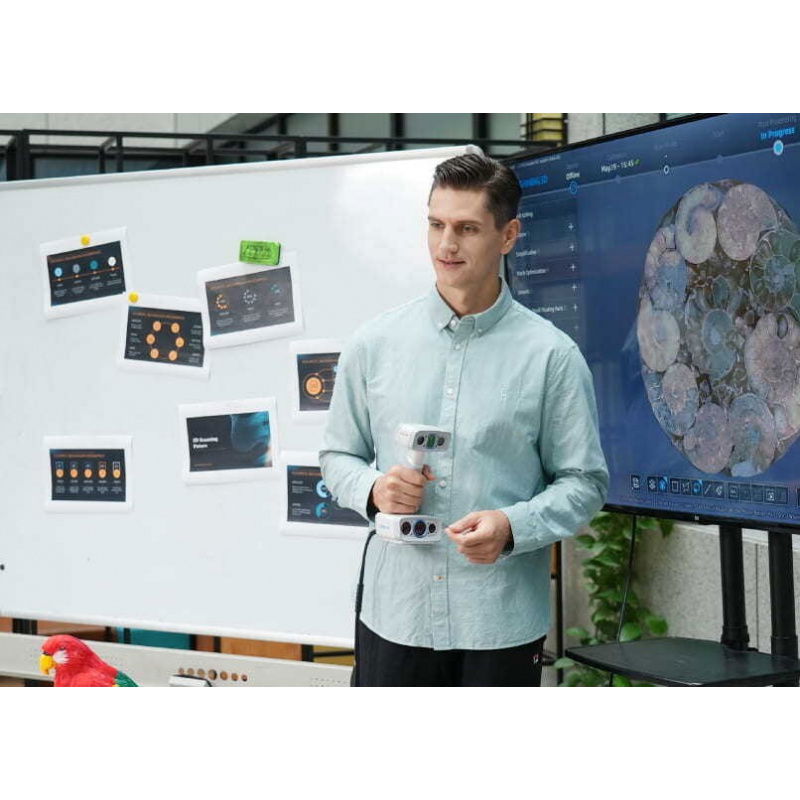 The EinScan H2 is a handheld hybrid 3D scanner that combines white LED and infrared VCSEL light , offering exceptional versatility and data quality. Thanks to an improved 5MP texture camera , the device produces photorealistic 3D models with high color fidelity and detail. It is ideal for engineers, designers, and professionals in the medical, educational, and museum industries.