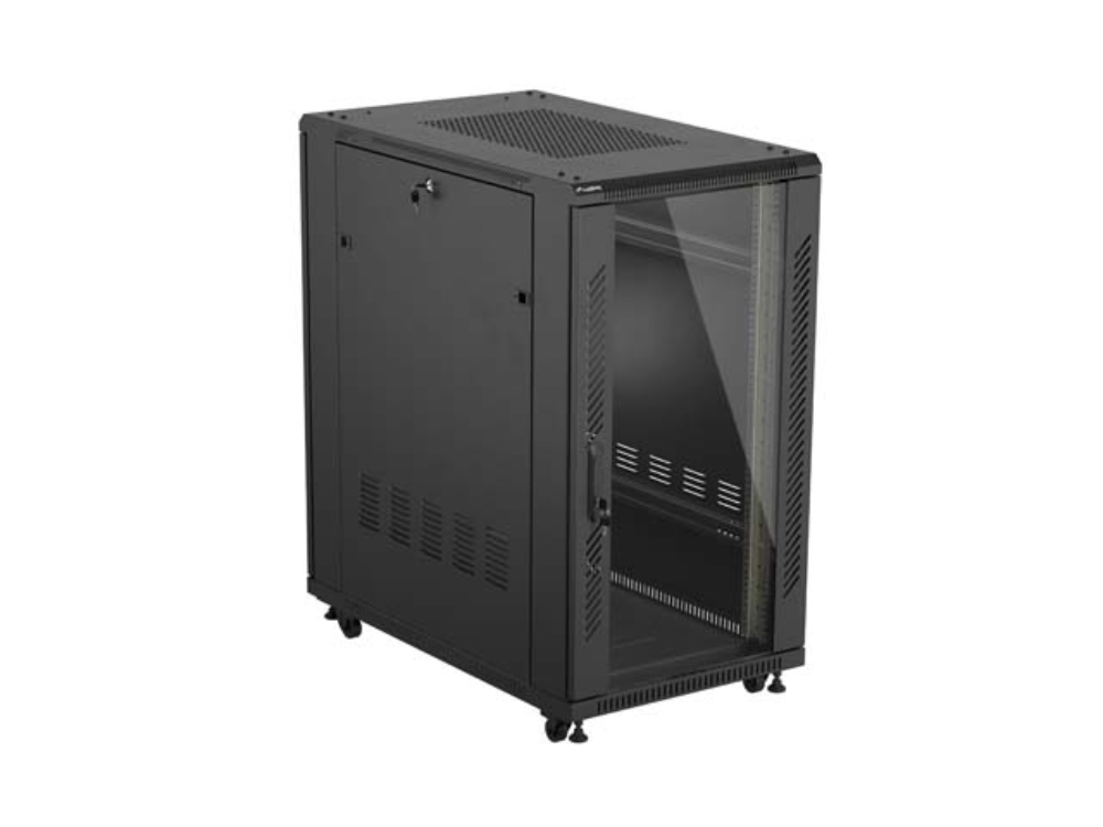 The Lanberg FF01 floor-standing server cabinet , with a 22U height and dimensions of 600 x 1000 mm, is a high-end solution designed for professional IT environments, data centers, and complex IT installations . Its design ensures maximum functionality, equipment security , and ease of use. Its robust cold-rolled steel housing guarantees stability, high durability, and resistance to damage, while also enabling easy management of a large number of network and server devices.