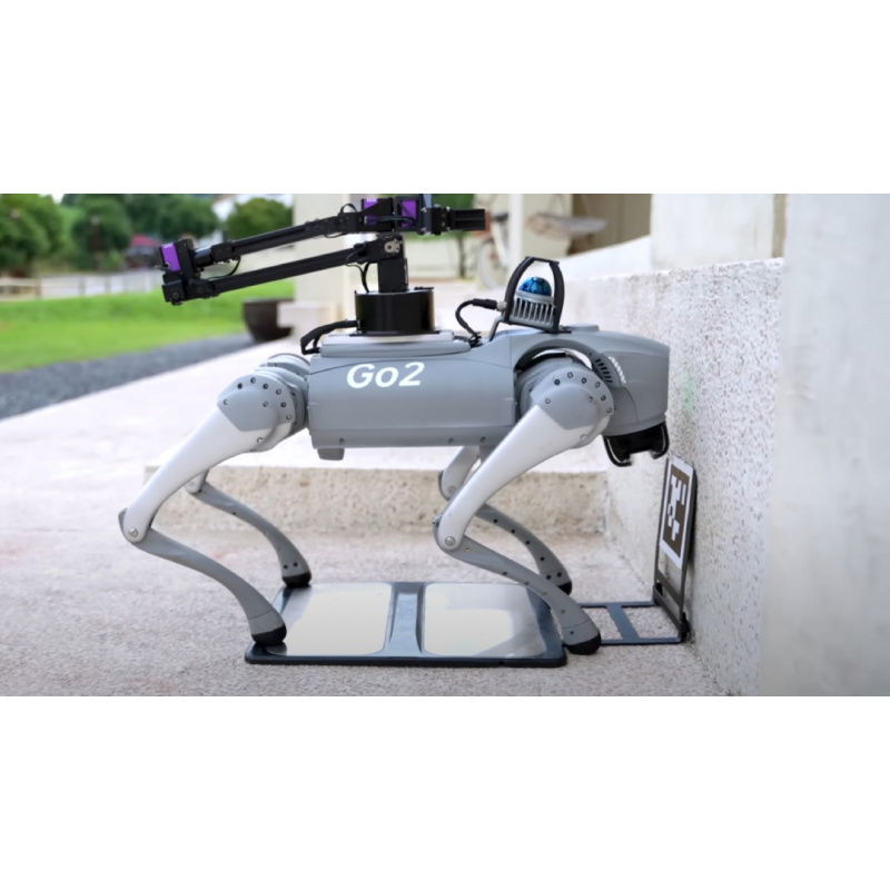 When the robot's battery runs low, Go2 Edu locates the station and places itself on its self-charging base to recharge.