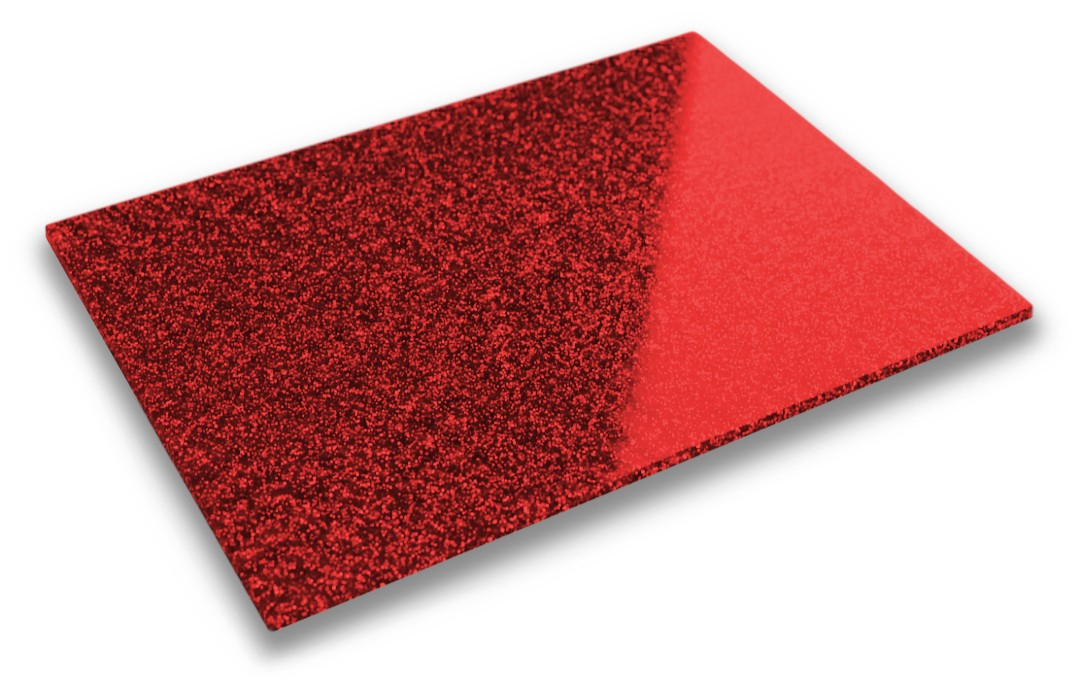 Product description: PMMA acrylic plate - 3 mm - 400 x 600 mm - Glitter Red - 1 pc.