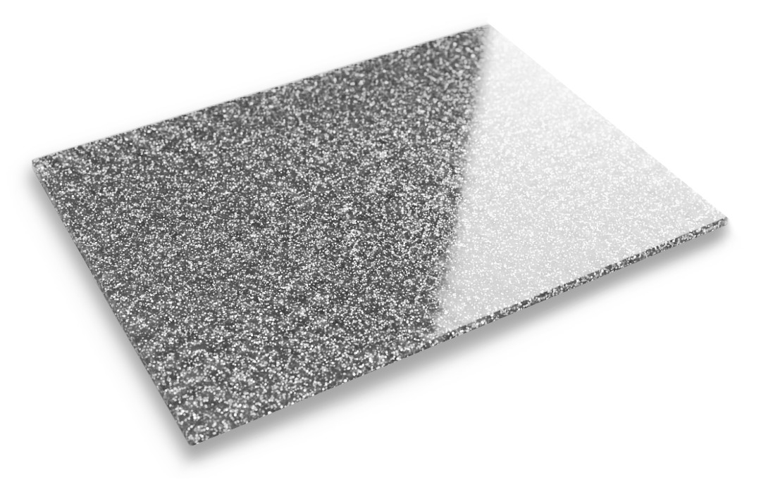 The acrylic plate (PMMA) filled with glitter particles was created using the innovative Cell CAST technology, which ensures excellent optical quality, repeatable results and a high level of machining accuracy. The sheet has two different surfaces—one side is glossy and the other matte—ensuring high quality and creative flexibility . It also allows for customization to a specific project, including decorations, awards, trophies, and other utility items. Thanks to the material's stiffness and ease of modification, it's ideal for use with a CO₂ laser . For CNC milling , mechanical cutting, and hand forming, this board is a versatile choice for artistic design, handmade gift creation, ornaments, and decorations, as well as commercial applications.