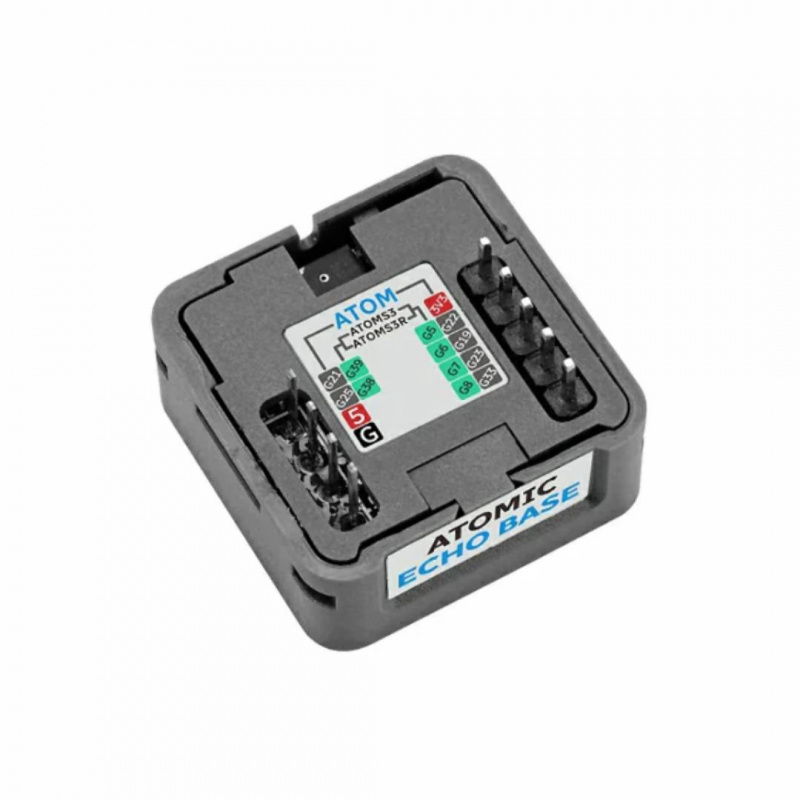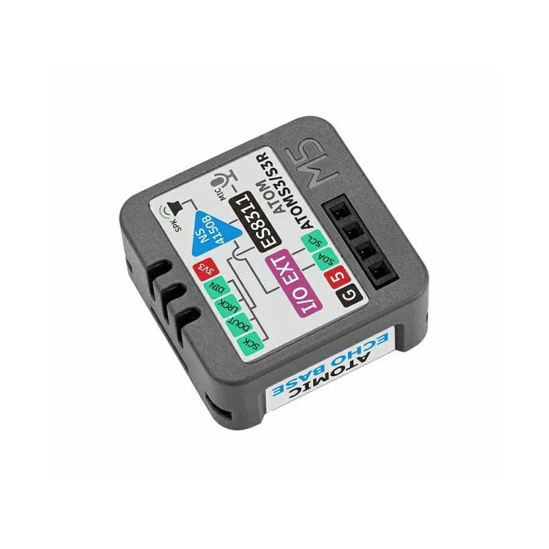 Atomic Echo Base is fully compatible with M5 Atom series devices such as Atom Lite , Matrix , AtomS3 , AtomS3R or AtomS3R CAM . Depending on the host model, the appropriate I2S pins are used, which must be included in the program code. Programming is possible using Arduino IDE, UIFlow 2.0 and ESP-IDF , which allows for flexible adaptation of the functionality to the project. For users of voice systems , ready-made libraries and examples are available , such as OpenAI Voice Assistant for AtomS3R.