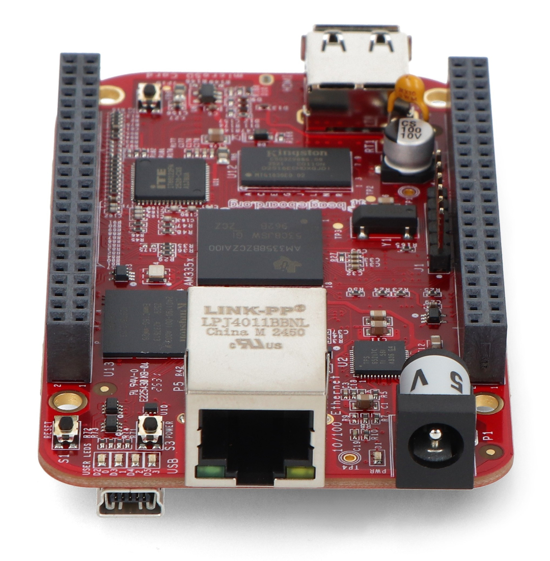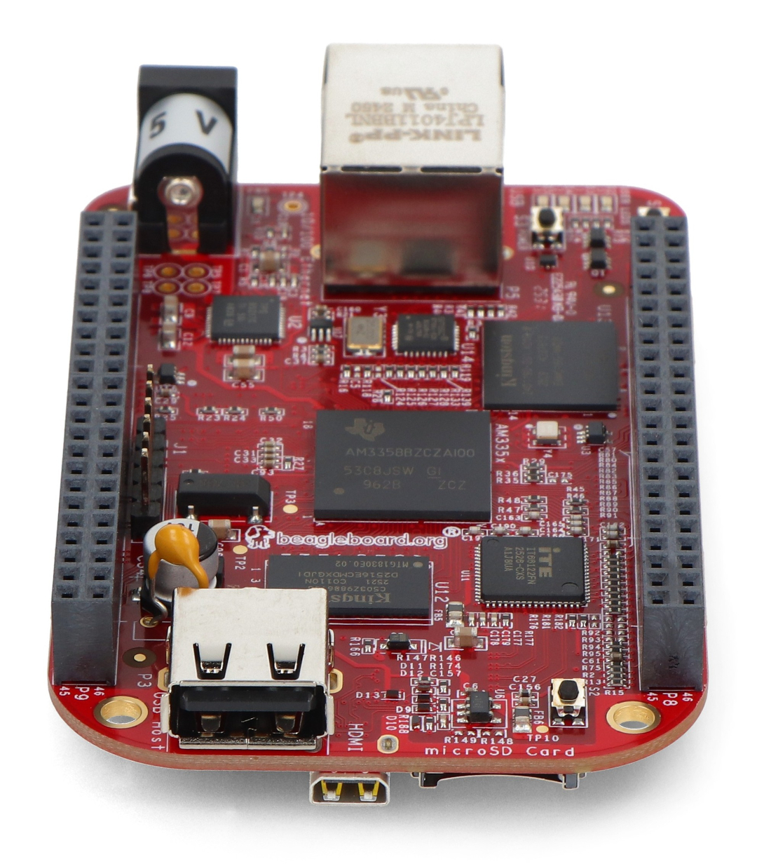 - Processor: Sitara AM3358BZCZ100, ARM Cortex A8, 1 GHz, 32-bit RISC