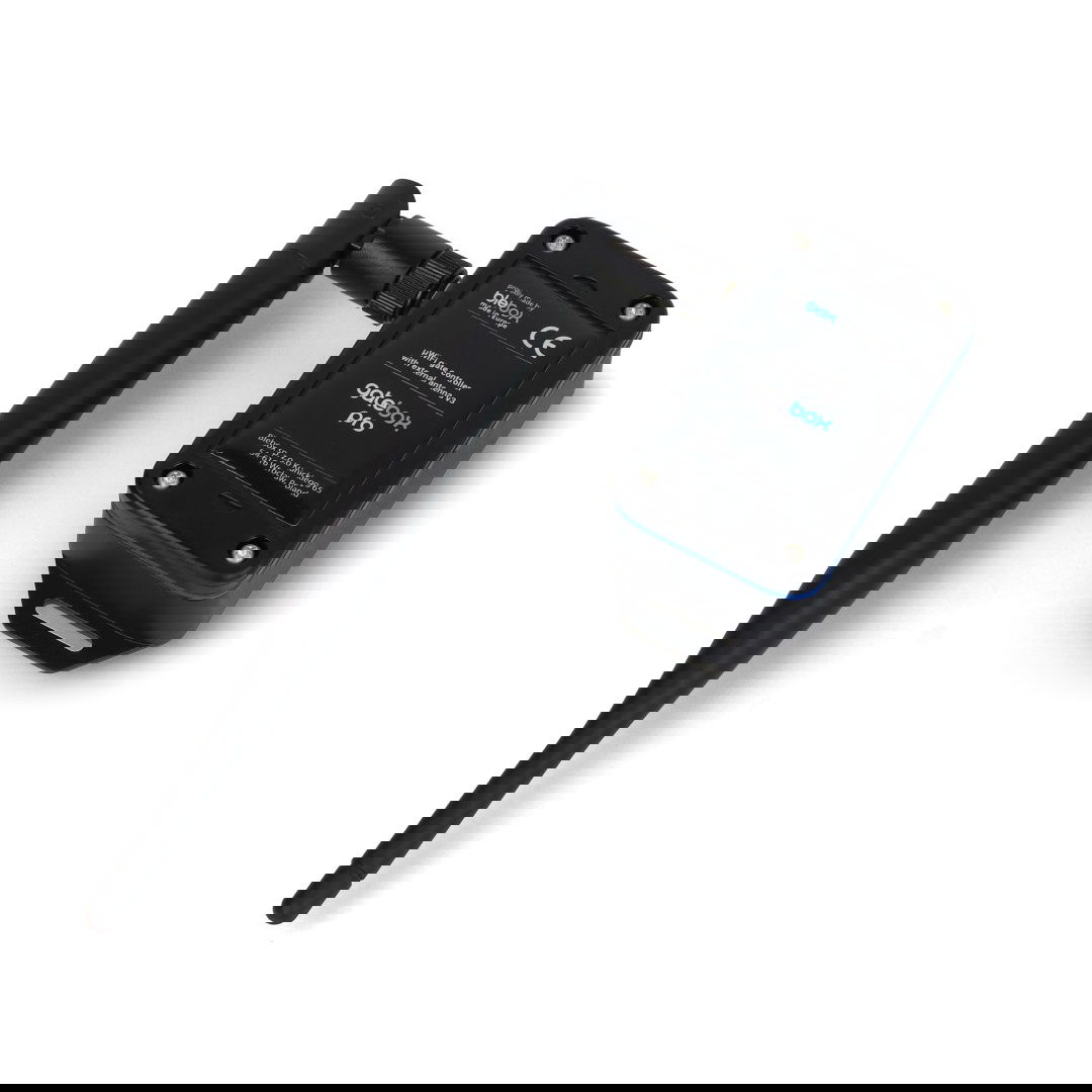 The controller is equipped with an RP-SMA antenna connector, to which the antenna is connected. A 5 dB gain antenna is included in the kit. Using an extension cable (not included), it can be placed anywhere.