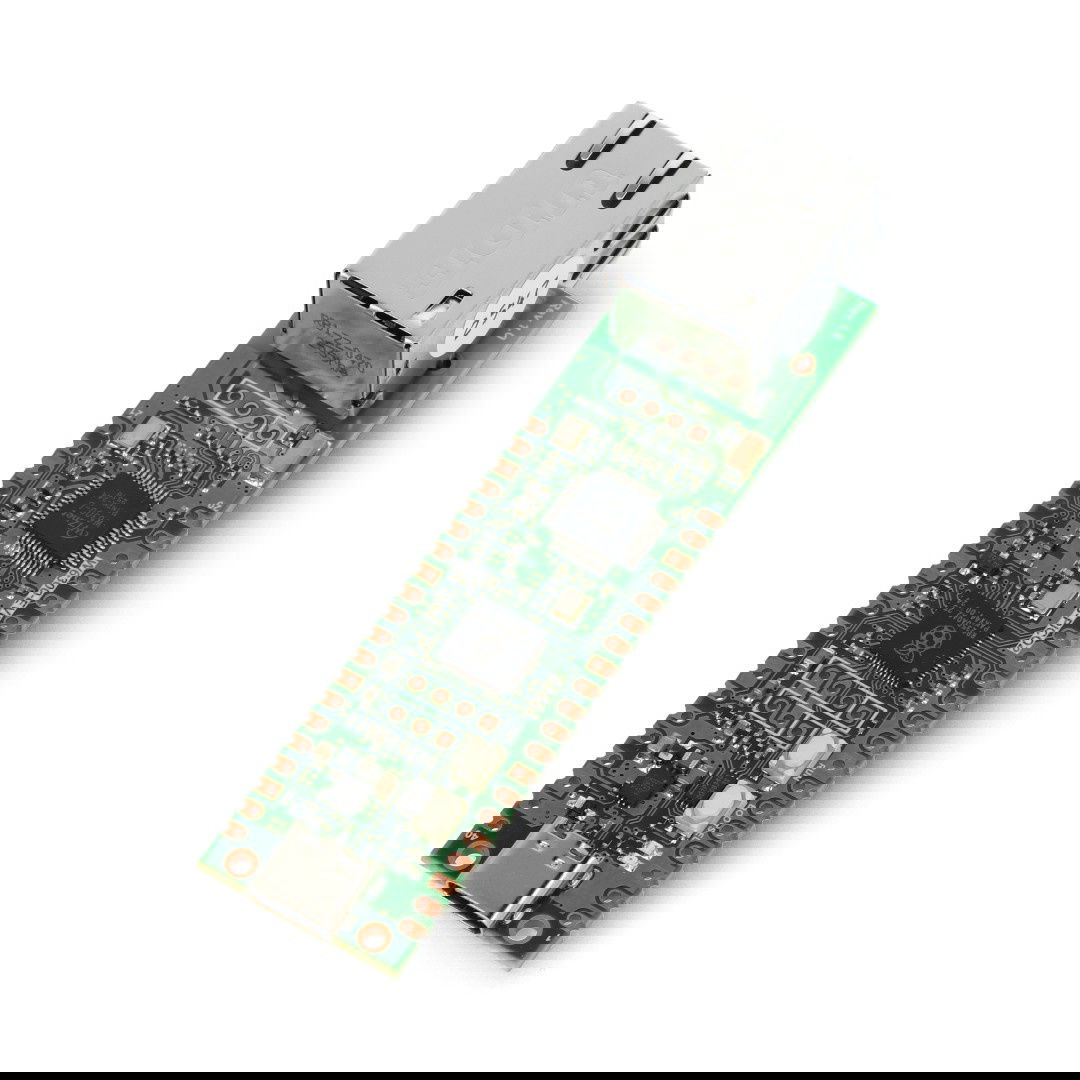 The W6300-EVB-Pico2 is a compact development module based on the RP2350 microcontroller with 16MB of on-board Flash memory and a dual-core ARM Cortex-M33 processor. The W6300's integrated Ethernet controller supports IPv4/IPv6, TCP/UDP, ICMP, and IGMP standards, enabling the development of high-performance network applications without additional circuitry. The module offers a wide I/O voltage range (from 1.8V to 5V), a rich set of digital and analog peripherals, and advanced security features such as TrustZone, Secure Boot, and OTP . Thanks to compatibility with the Raspberry Pi Pico 2 and QSPI pins dedicated to Ethernet , the W6300-EVB-Pico2 is ready for integration into professional embedded and IoT projects.