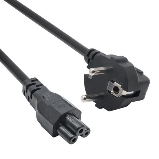 The Akyga AK-NB-08C is a high-quality power cable designed for connecting laptop power supplies and multimedia equipment. Its 1-meter length makes it ideal for confined spaces, ensuring convenient and organized connection of devices without excess cable clutter. One end of the cable is terminated with a universal CEE 7/7 plug (C/E/F standard) , compatible with European sockets, while the other features the popular IEC C5 connector, used in laptop power supplies, monitors, and printers. The cable is made of high-quality copper , ensuring improved conductivity, durability, and safety for both home and office use.