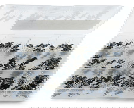 A set of 12 of the most popular electrolytic capacitor values , ranging from 1uF to 470uF, for various voltages, designed for service, educational, and design applications. The set contains 120 capacitors, ideal for both the electronics hobbyist's workshop and the professional repair lab . The capacitors are precisely matched in terms of parameters , allowing them to be used in a wide range of common electronic systems, from rectifiers and power supplies to audio modules and microprocessor controllers.