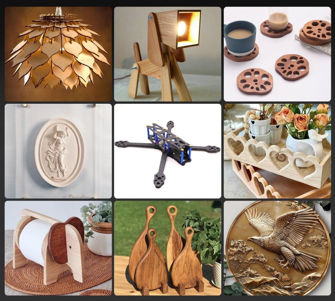 The machine can handle a wide range of materials — from wood and MDF, through acrylic and carbon fiber, to aluminum, copper, and stainless steel . This makes it suitable for use in carpentry workshops, prototyping studios, and the production of functional and decorative elements. Its versatility makes it suitable for both amateur and professional use.