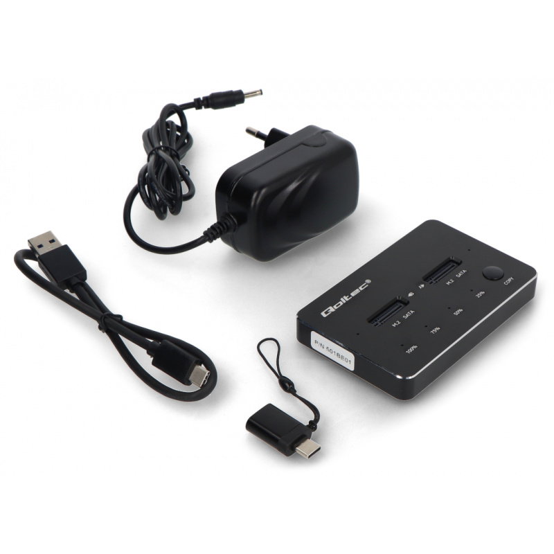 Product description: Docking station for 2x SSD M.2 SATA NGFF drives - USB type C - Qoltec 50310