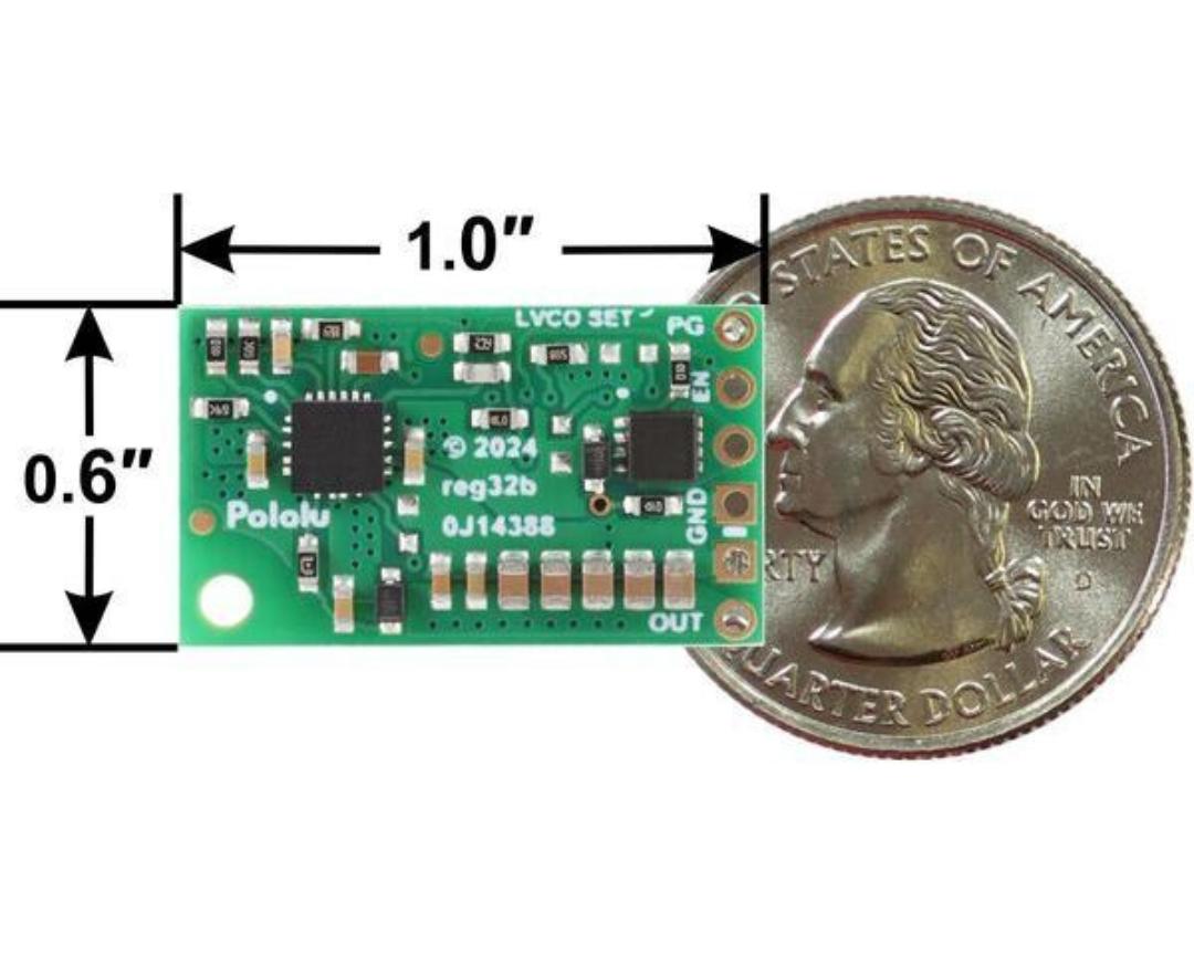 D30V30MAS is one of the modules from the series of miniature voltage regulators from Pololu , based on a synchronized step-down converter . It allows to obtain an output voltage from 4.2 V to 7 V from an input in the range of 4.2 V to 45 V. The maximum continuous output current depends on the input voltage and thermal conditions and is 3 A. It also features a power saving mode and a "power good" indicator that indicates the stability of the output voltage. The compact size and standard pinout make it easy to integrate into prototypes and electronic devices.
