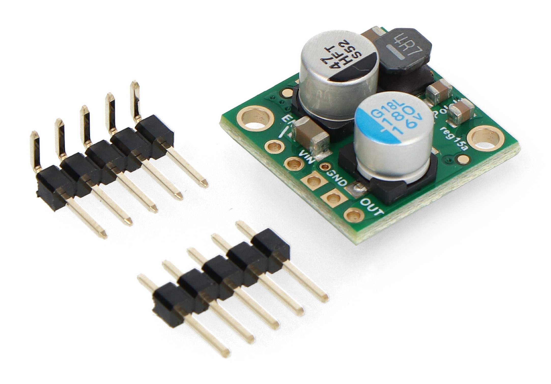 A step-down (buck) converter used to power systems operating with voltages of 9 V. The advantage of the system is a wide range of input voltages from 10.5 V to as much as 38 V. The D24V25Fx module allows for current consumption of up to 2.5 A.