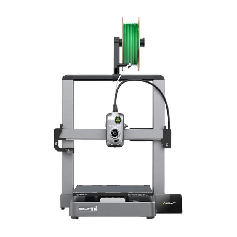 The Creality Hi is a modern 3D printer that combines high precision, speed, and ease of use. With a maximum print speed of up to 500 mm/s and acceleration of up to 12,000 mm/s² , it offers significantly shorter print times without compromising model quality. Full automation, including bed leveling, filament reading, and PA calibration , eliminates the need for manual setup. A stable metal construction minimizes vibrations, and a built-in camera with a privacy cover allows remote monitoring of the device. A foldable 3.2-inch touchscreen, advanced extruder , filament runout sensor, and work light ensure ease of use. This model is compatible with Creality OS and Creality Print . The printer supports a variety of materials, including PLA , PETG , and PLA-CF, and thanks to the CFS system, it enables multicolor printing and automatic filament switching , opening up new possibilities for creative prints.