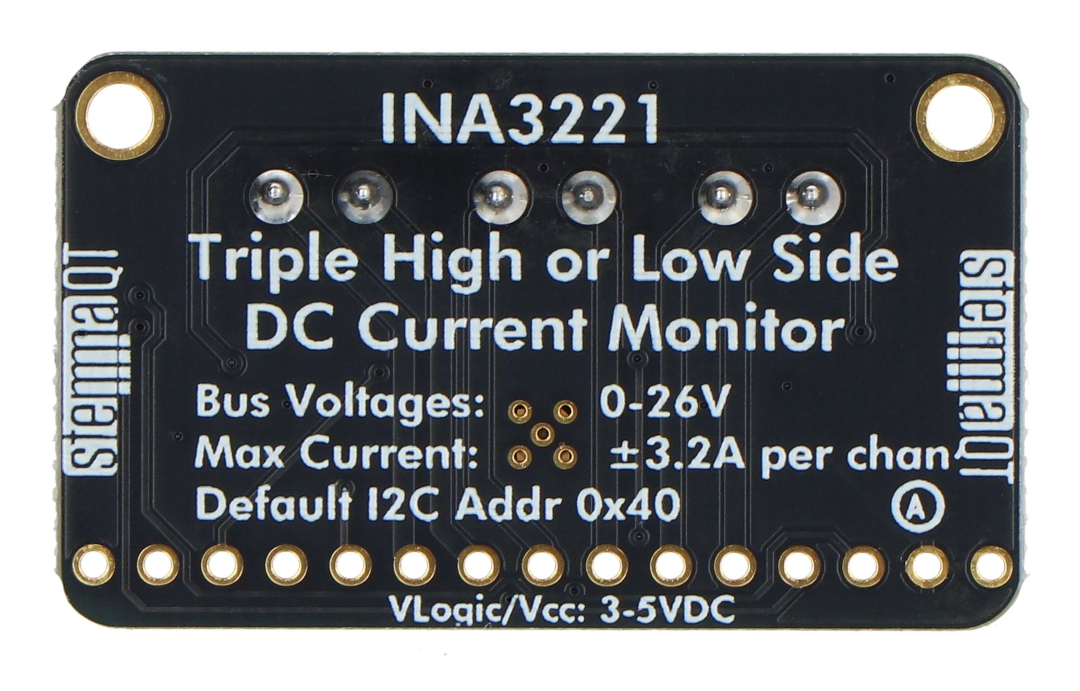 Product description: INA3221 - current and voltage sensor 0 - 26 V DC 3.2 A - 3-channel - I2C - STEMMA QT / Qwiic - Adafruit 6062