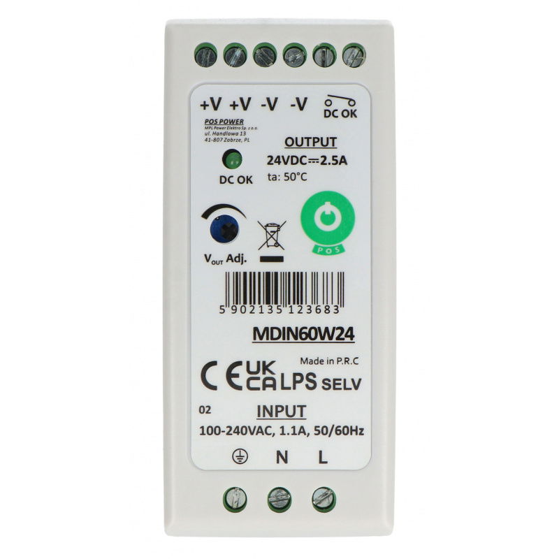 Product description: MDIN60W24 DIN rail power supply - 24 V / 2.5 A / 60 W