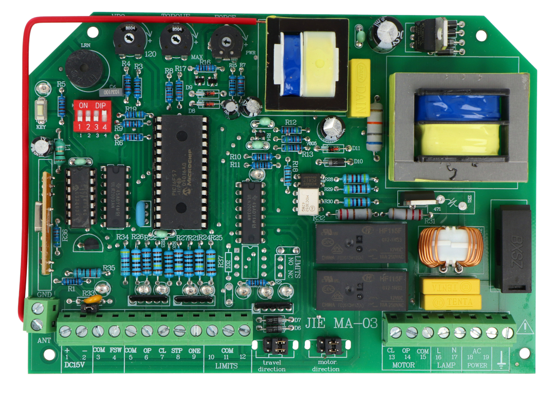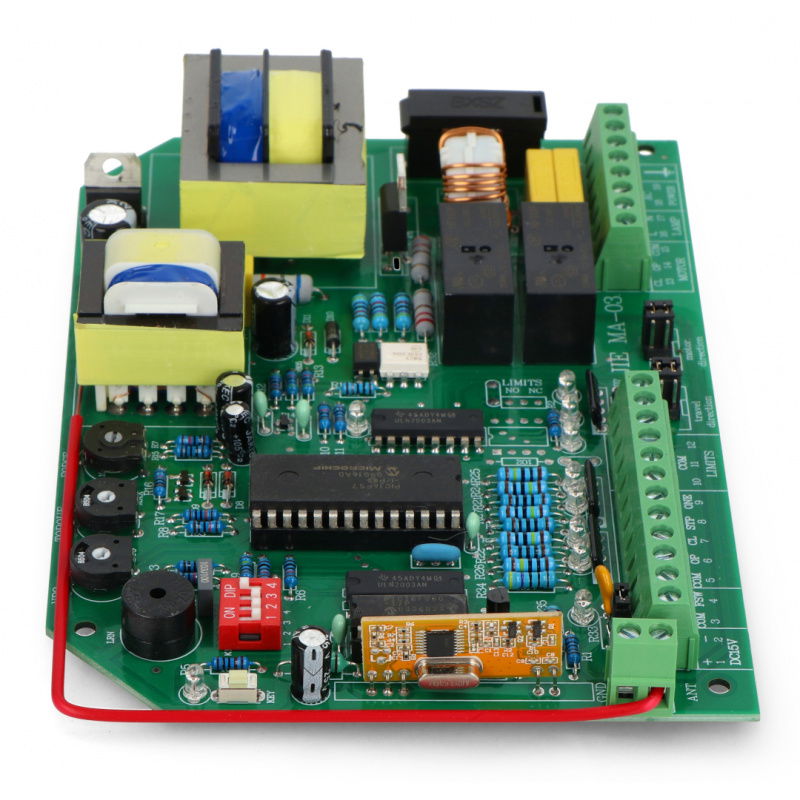 KSE180/KSE380 sliding gate control unit with a 433.92 MHz radio receiver. Soft start and stop prevents the operator from being pulled out during operation. The "auto-reverse" function automatically reverses the operator when it encounters an obstacle. Equipped with the ability to automatically close the gate after a pre-set time. Optical protection allows for the connection of a photocell to detect an obstacle and trigger the operator to react accordingly.