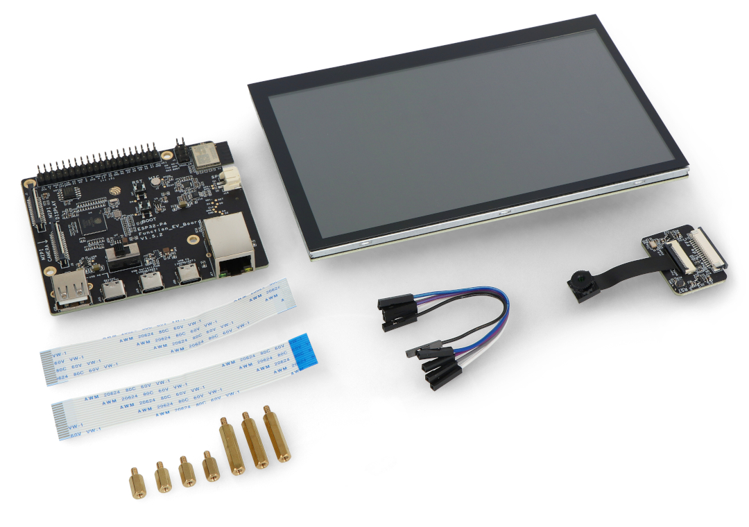 ESP32-P4-Function-EV-Board by Espressif is an advanced development platform designed for IoT, multimedia and smart device projects. Equipped with the ESP32-P4 chip, offering high performance and energy efficiency. The ESP32-C6-MINI-1 module provides reliable wireless connectivity via WiFi 6 and Bluetooth 5.0 , enabling a wide range of applications. The board supports USB 2.0, MIPI-CSI / DSI and hardware H264 encoder , making it a great choice for video and audio systems. With 55 GPIO pins , you can easily connect additional modules and sensors. The built-in microphone , audio amplifier and speaker port make the board also suitable for projects related to speech recognition and sound. The set includes a 7-inch capacitive touch screen with a resolution of 1024 x 600 px and a 2 MPx camera with a MIPI-CSI interface, which allows for the implementation of visual projects such as video intercoms or monitoring systems. The extensive set of interfaces makes the ESP32-P4-Function-EV-Board an excellent base for modern network and AI applications.