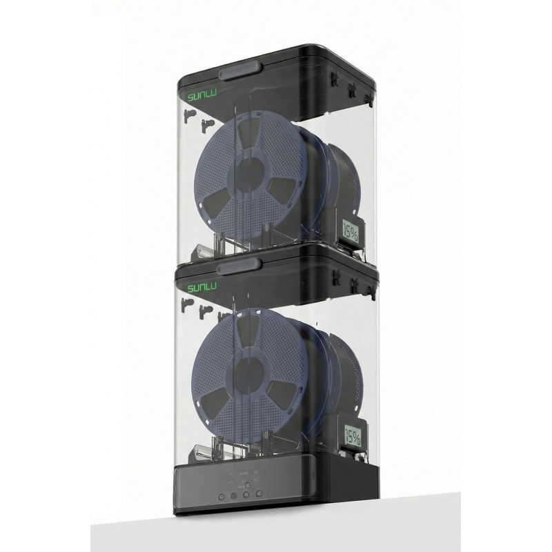 The Sunlu Storage Box is designed for long-term storage of filaments in stable conditions . Silicone seals effectively isolate the interior from ambient moisture, while a handle and recessed base make it easy to carry. The design also allows for direct printing from the closed container .