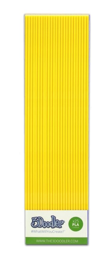 Filament 3Doodler Create+ is a set of 25 high-quality yellow PLA refills with a diameter of 3 mm , compatible with popular 3Doodler Create, PRO, 2.0 and 1.0 pens. PLA material is environmentally friendly and works great in artistic projects thanks to its gloss and stiffness . It is an ideal choice for both beginners and advanced 3D pen users.