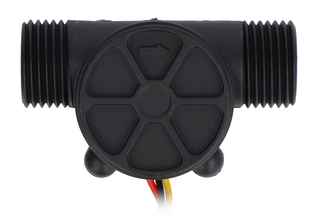 A simple sensor for measuring liquid flow. It consists of a fan with a magnet and Hall sensors. By counting the pulses from the rotating fan, liquid flow can be easily measured. Thanks to this method, the sensor's electronics do not come into contact with the water.