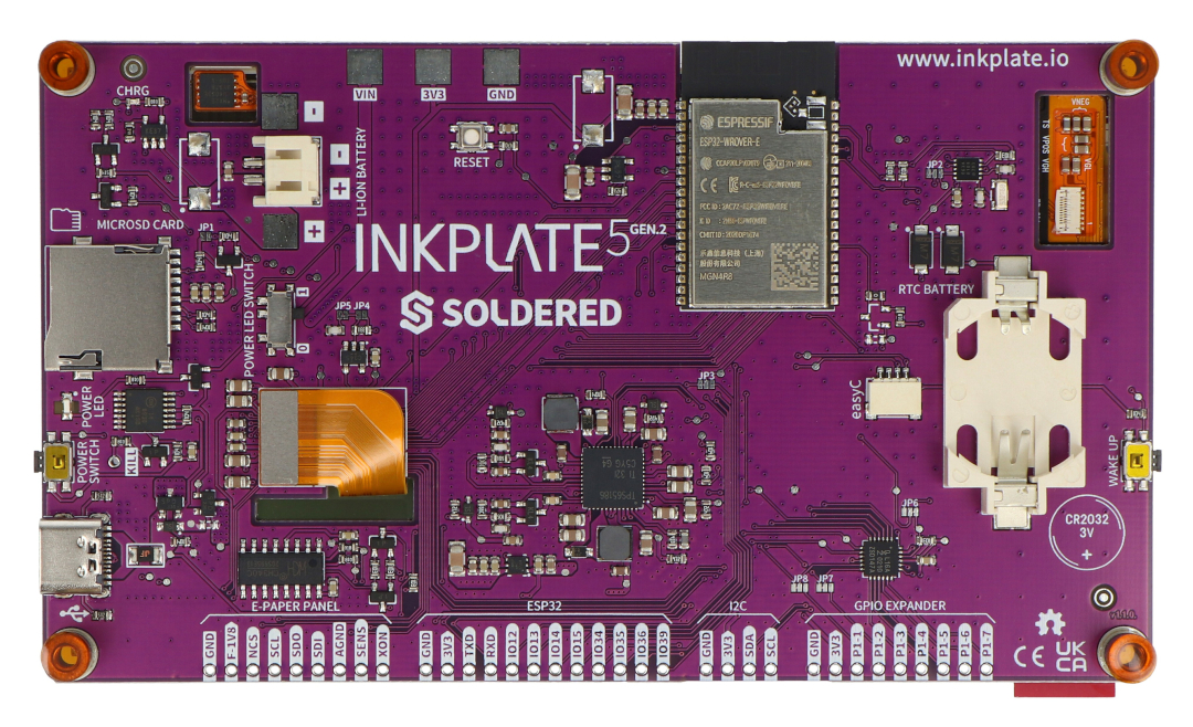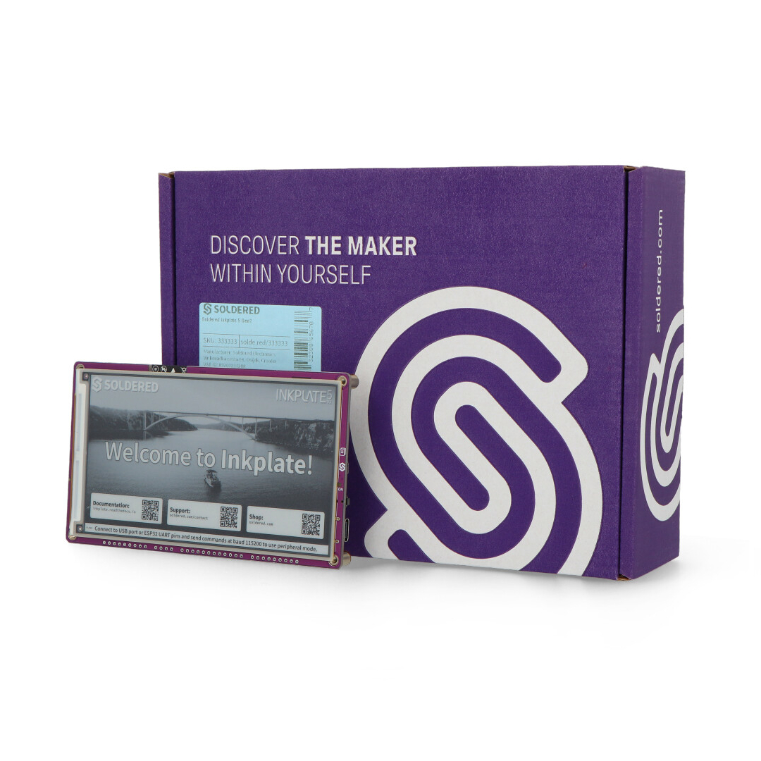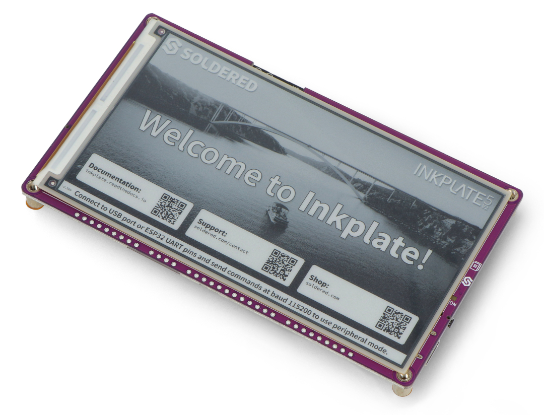 - 1x Inkplate 5 Gen2 - e-paper display 5.2'' 1280 x 720 px - ESP32 - Arduino compatible - Soldered 333333