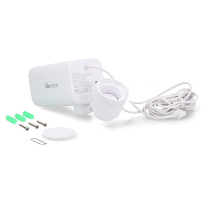The camera works with the eWeLink app, allowing for live viewing, motion detection configuration, privacy zone setting, and recording playback. The CAM-B1P is compatible with Amazon Alexa and Google Assistant , allowing for voice control and displaying images on compatible screens. Support for ONVIF and RTSP protocols enables integration with NVRs and surveillance systems on the same LAN. Thanks to the Smart Scene function , the camera can work with other Sonoff devices , creating extensive automation scenarios.