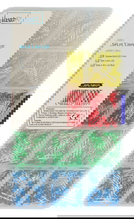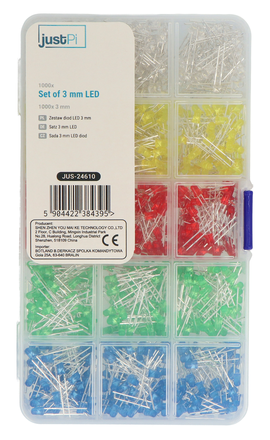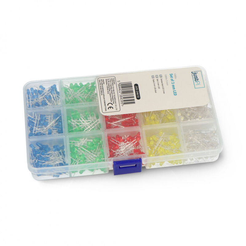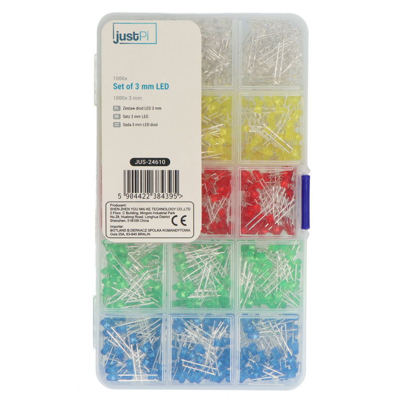 Product description: Set of 3 mm LED diodes - justPi - 1000 pcs + organizer