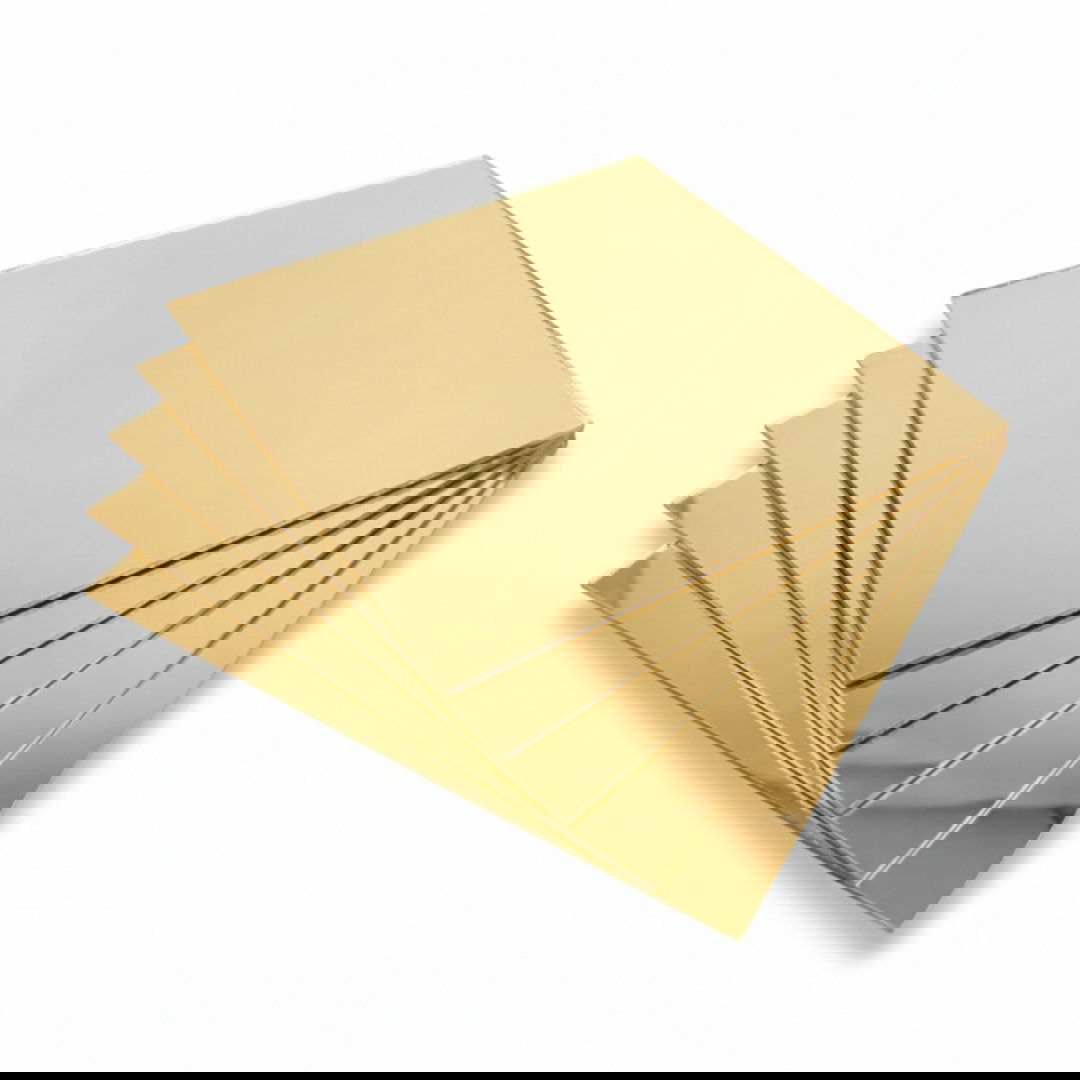 Golden mirror plexiglass is a durable and lightweight alternative to classic mirror glass, ideal for both decorative and functional applications. It is highly resistant to UV radiation and weathering , making it suitable for both indoor and outdoor use. The 2 mm thick, 200 x 200 mm sheet is easy to cut, mill, and thermoform. Unlike glass, it is shatterproof, significantly increasing safety. The set includes 5 pieces of plexiglass.