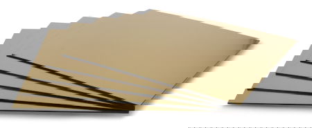 1.6 mm gold engraving laminate in a 200 x 200 mm format is a high-quality, two-layer material designed for precise engraving and cutting . Its UV resistance and mechanical durability make it ideal for both indoor and outdoor applications . Engraving is performed on one side of one layer, creating a clear, contrasting effect. The material can be easily processed with laser, mechanical, and thermal processes , making it a universal solution for many industries.