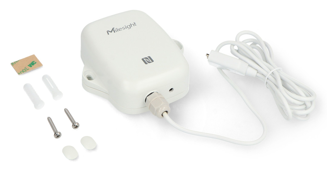 The sensor body is made of flammable ABS + PC , and the probe is made of 316 stainless steel . The sensor meets the IP67 standard and is UV resistant. It can operate in temperatures from -30°C to 70°C and humidity from 0% RH to 100% RH. Wall mounting is possible using 3M tape or cable ties. Replaceable ER18505 4000 mAh battery (with the option to double the capacity) provides up to a decade of service-free operation.