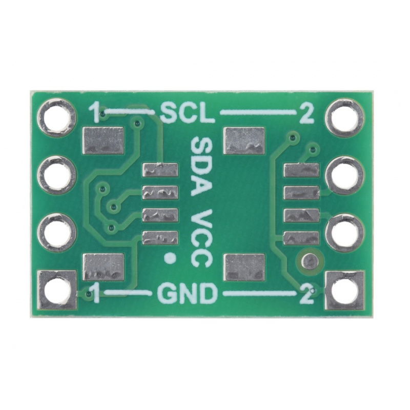 For the module to operate correctly, each side must be powered independently: side 1 with a voltage of 3 V to 5.5 V, side 2 with a voltage of 2.25 V to 5.5 V. The SDA and SCL lines must be connected to both devices, remembering to maintain the separation of GND1 and GND2 grounds - they must not be connected directly , as the module provides galvanic isolation. The built-in 10 kΩ pull-up resistors on both sides ensure correct operation of the bus, however, for high communication speeds, external pull-up resistors can be used in parallel.