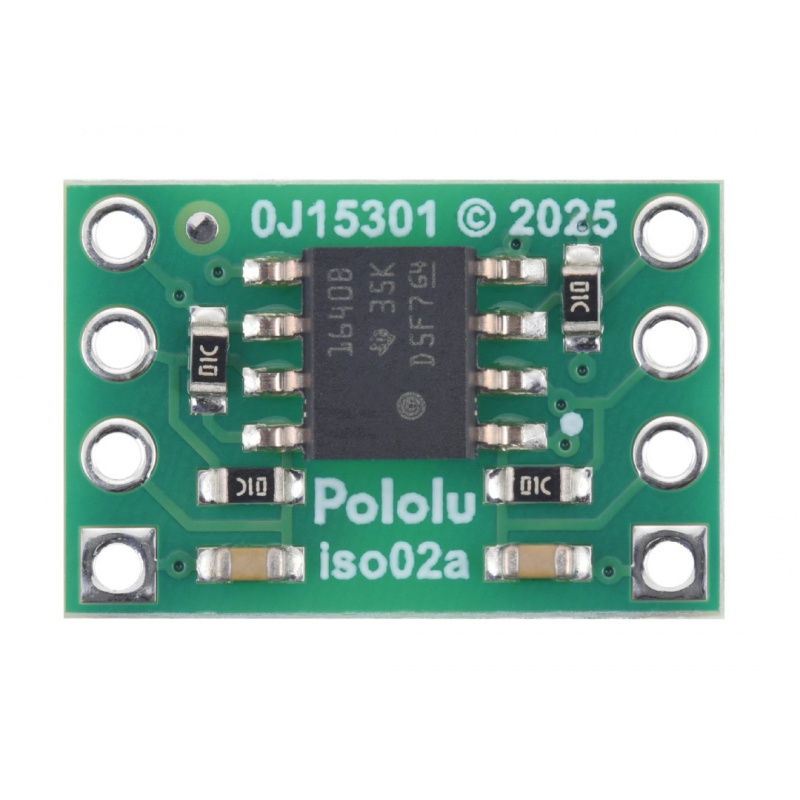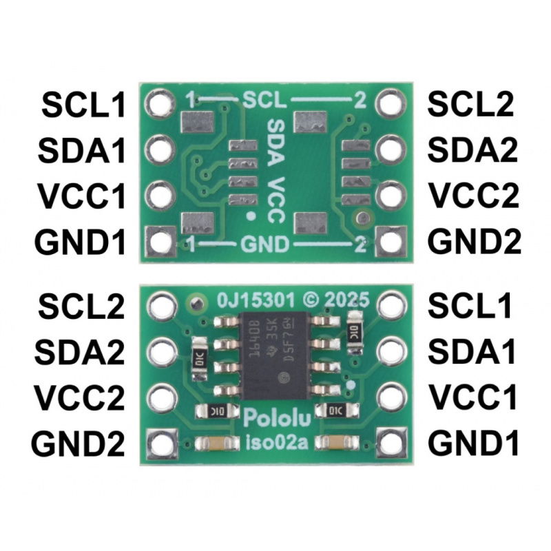 The Pololu I2C Isolator is a compact module based on the TI ISO1640 system, which enables electrically isolated I2C communication at speeds up to 1.7 MHz . Galvanic isolation prevents current flow between the two sides of the module, protecting connected devices from damage caused by potential differences or improper power supply. The module is available in a version without connectors , with mounting holes compatible with universal contact boards and goldpin connectors with a pitch of 2.54 mm. It is ideally suited for applications requiring reliable I2C bus protection and ensuring stable communication in embedded systems and automation.
