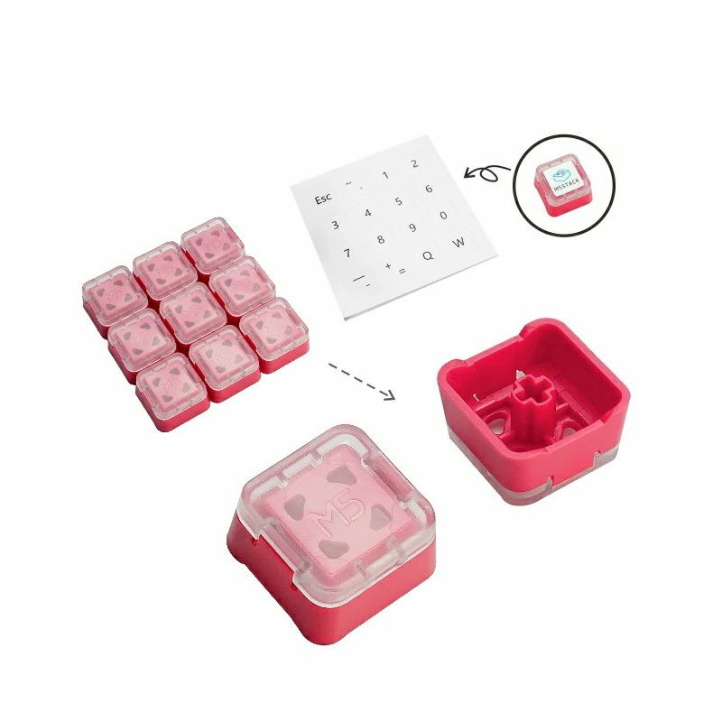 The M5Stack keycap set includes nine high-quality components for mechanical keyboards , designed with personalization and comfort in mind. The snap-in design allows for quick and intuitive installation and replacement of keycap customization stickers . The delicately contoured surface of each keycap improves comfort by adapting to the shape of your finger. Compatibility with popular switches makes this set an excellent choice for users who value functionality and aesthetics.