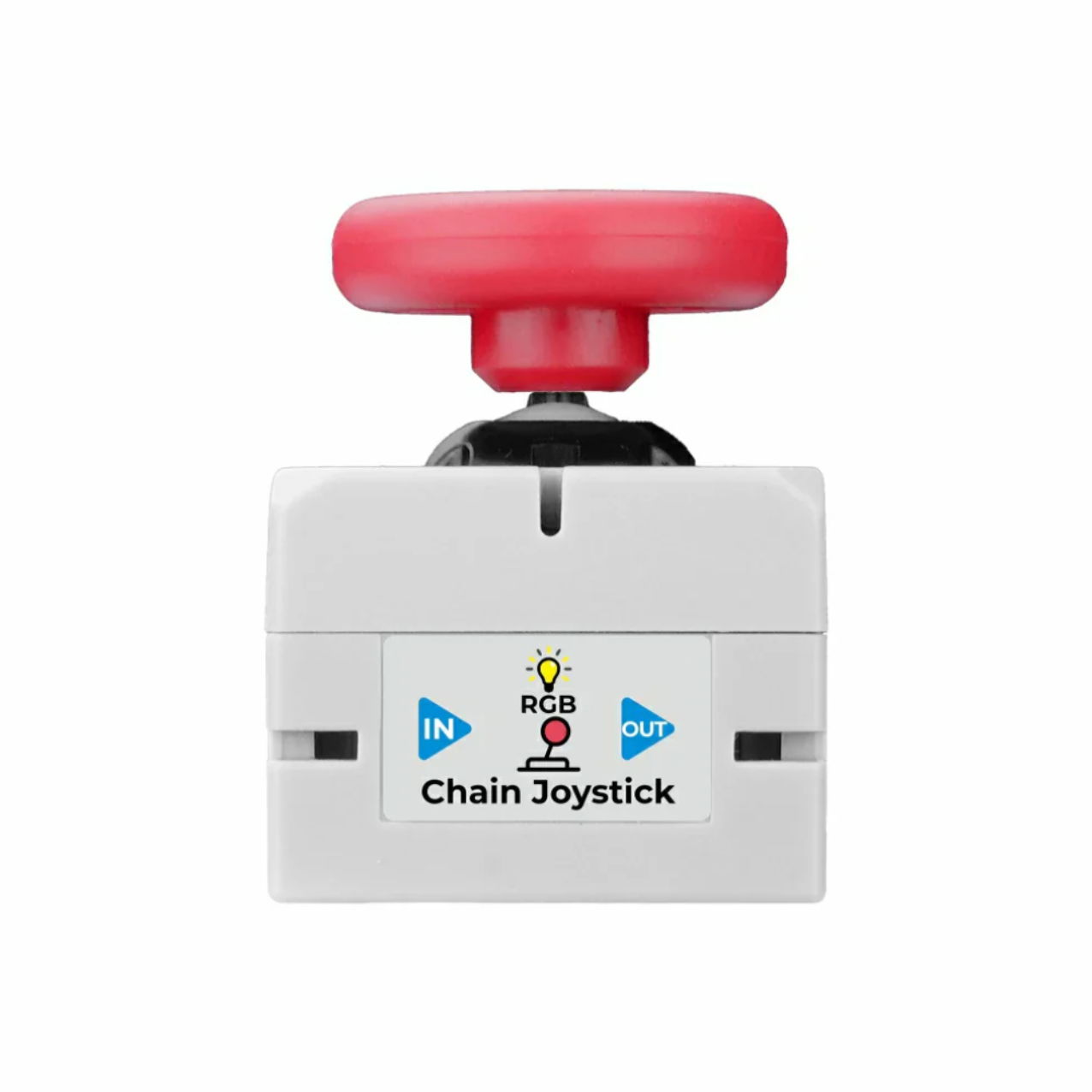 The Chain Joystick is a precision input module designed for advanced applications related to human-machine interaction and robot control . The device utilizes a Hall-effect joystick, which measures changes in the magnetic field instead of traditional mechanical contact. This solution ensures high accuracy, wear resistance, long service life, and high immunity to electromagnetic interference. The module supports three control axes: analog X and Y inputs and a digital Z input (button) , enabling intuitive and precise motion control. The integrated STM32G031G8U6 microcontroller is responsible for signal processing and communication, while the built-in programmable RGB LED (WS2812C) allows for status and operating mode indication, or the creation of visual interface elements.