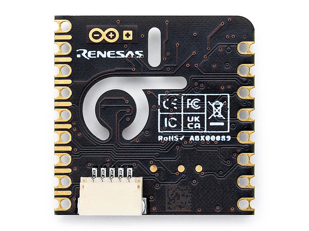 The module has pins in the form of edge pins with cutouts, enabling surface mounting or classic connection to the motherboard. It supports the following interfaces: I2C, SPI, UART and two ADC inputs , with the possibility of programming the IO voltage in the range of 1.8V to 3.3V. Thanks to the ESLOV connector, the module easily works with the Arduino Portenta family (e.g., H7 , C33 ) and MKR (e.g., MKR WAN 1310 , MKR WiFi 1010 ), as well as with selected Nano and Uno R4 boards.
