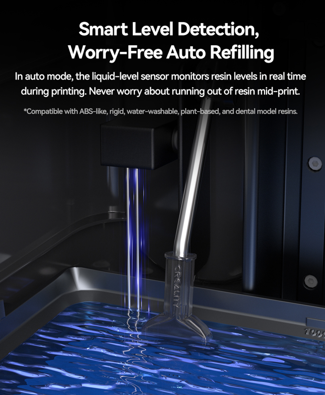 The module is equipped with an advanced resin level monitoring system that automatically refills the tank when the level drops below the required minimum. This helps avoid interruptions and ensures the printer runs smoothly. This is an indispensable feature for long and demanding projects.