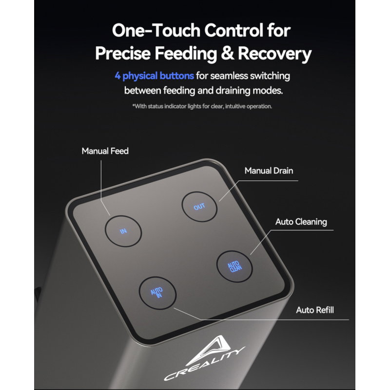 The Creality Intelligent Resin Pumping Module is a modern solution for Creality resin printer users, eliminating the hassle of manually managing resin . Thanks to its automatic pumping function and intelligent resin level detection, the module ensures uninterrupted operation of the 3D printer . Equipped with an intuitive control panel, it allows you to start and stop pumping with a single click . Robust silicone tubing and a cap ensure a tight seal and long-lasting durability. The module is made of high-quality materials, and its compact design makes installation easy . An excellent choice for those who value precision and comfort while working with resin.