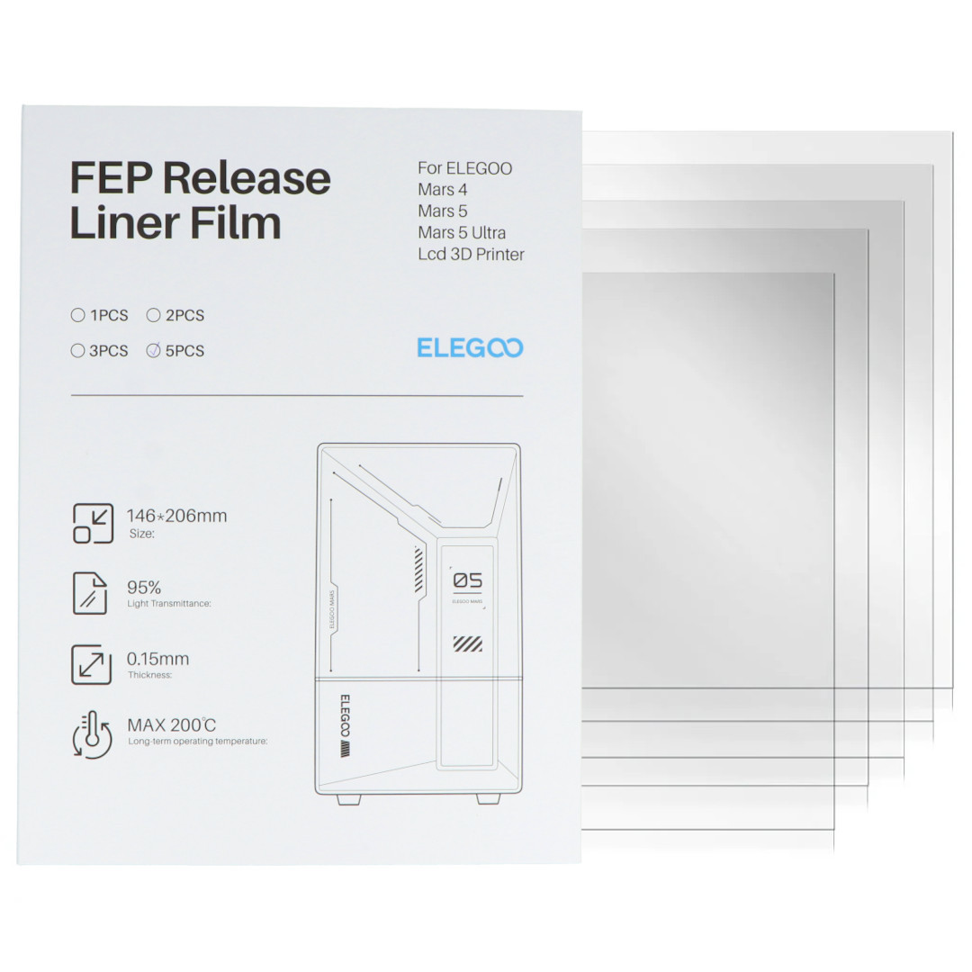 Product description: FEP film for Elegoo Mars 4 / 5 / 5 Ultra 3D printers - 206 x 146 mm - 5 pcs.