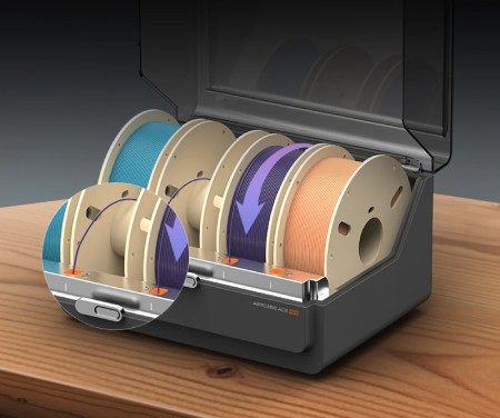 The module has a dual PTC heating system with a total power of up to 200 W , which maintains dry conditions inside, heating the filaments up to 55 ° C around the clock. This eliminates the risk of moisture absorption and related defects in printed models. The closed structure of the material protects against external environmental interference.