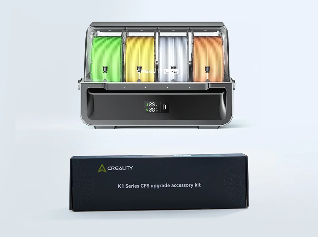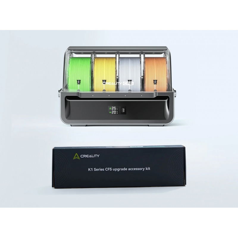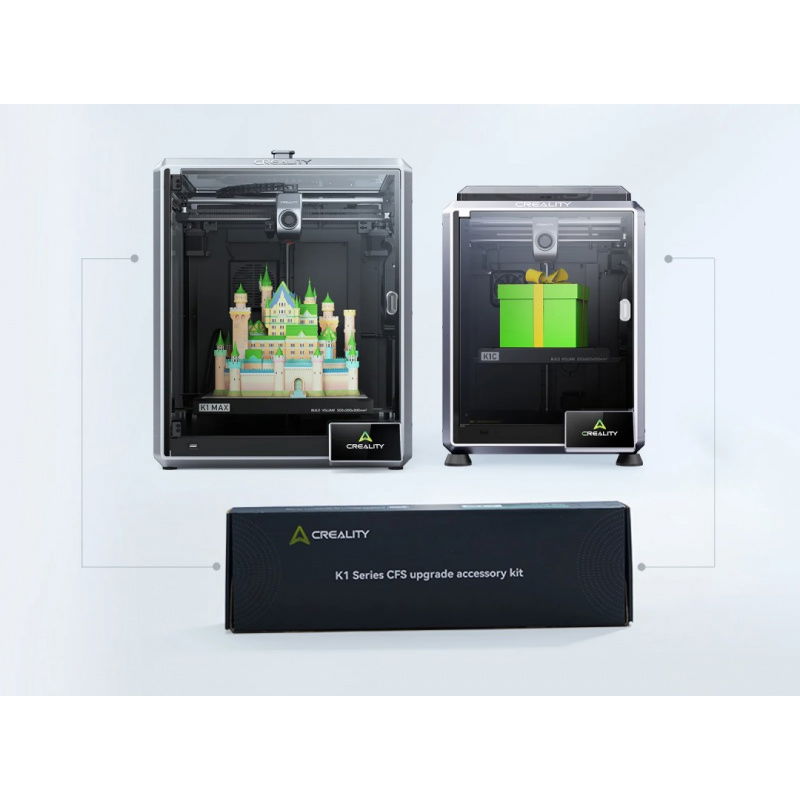 The K1 CFS Upgrade Kit is an innovative solution that adds automatic multicolor printing to Creality K1 series 3D printers — the K1 , K1 Max , K1C , and K1 SE . Thanks to a new extruder with a built-in cutter and filament end sensor, the system enables precise material management. The kit is designed for quick and intuitive connection to the CFS unit , offering automatic filament recognition (RFID), smooth color switching, and convenient software updates.