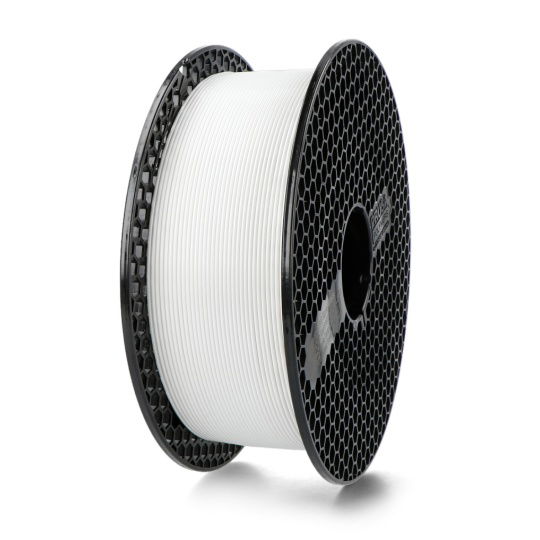White PETG filament , manufactured by Prusa . 3D models produced with this filament are characterized by increased flexibility and a high level of detail. The printing material has a diameter of 1.75 mm. The weight of the product on a spool is 1 kg. The recommended maximum drying temperature for Prusament PETG is 60°C for a minimum of 4 hours.