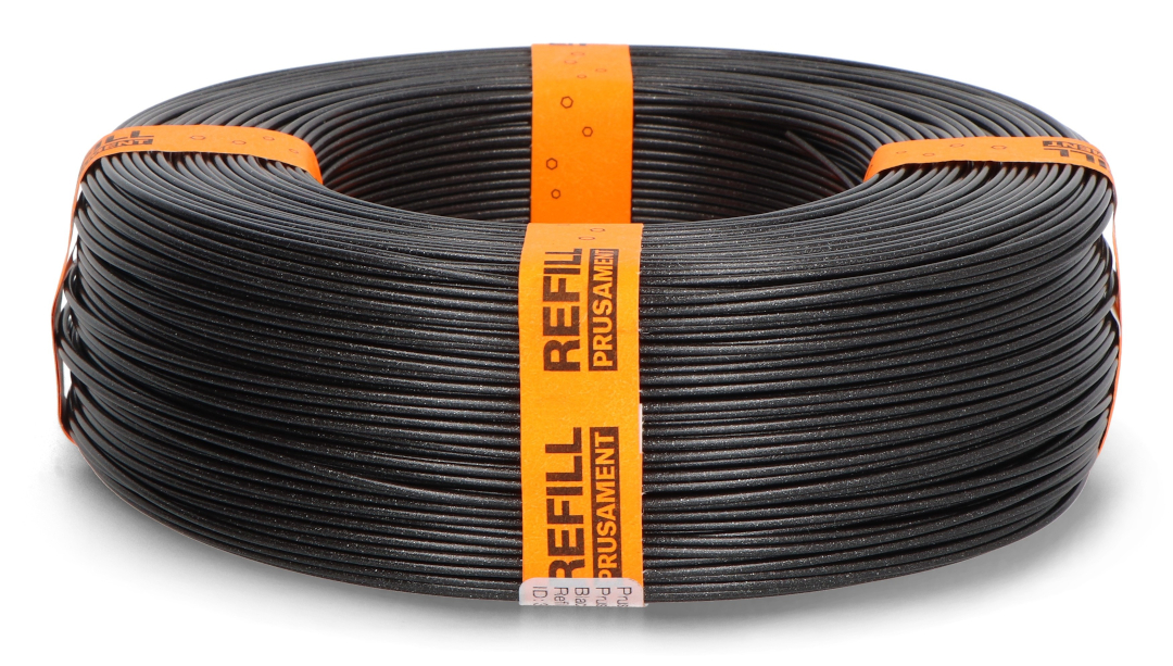 Prusament Refill filaments are an eco-friendly solution that allows you to reuse original Prusa spools . The material is wound on a cardboard core and designed to easily attach to the sides of an old spool. Thanks to their clever design and durable packaging, Refill filaments deliver the same print quality as full spools —without the risk of tangles. By using Refill filaments, you reduce waste and support sustainable development efforts.