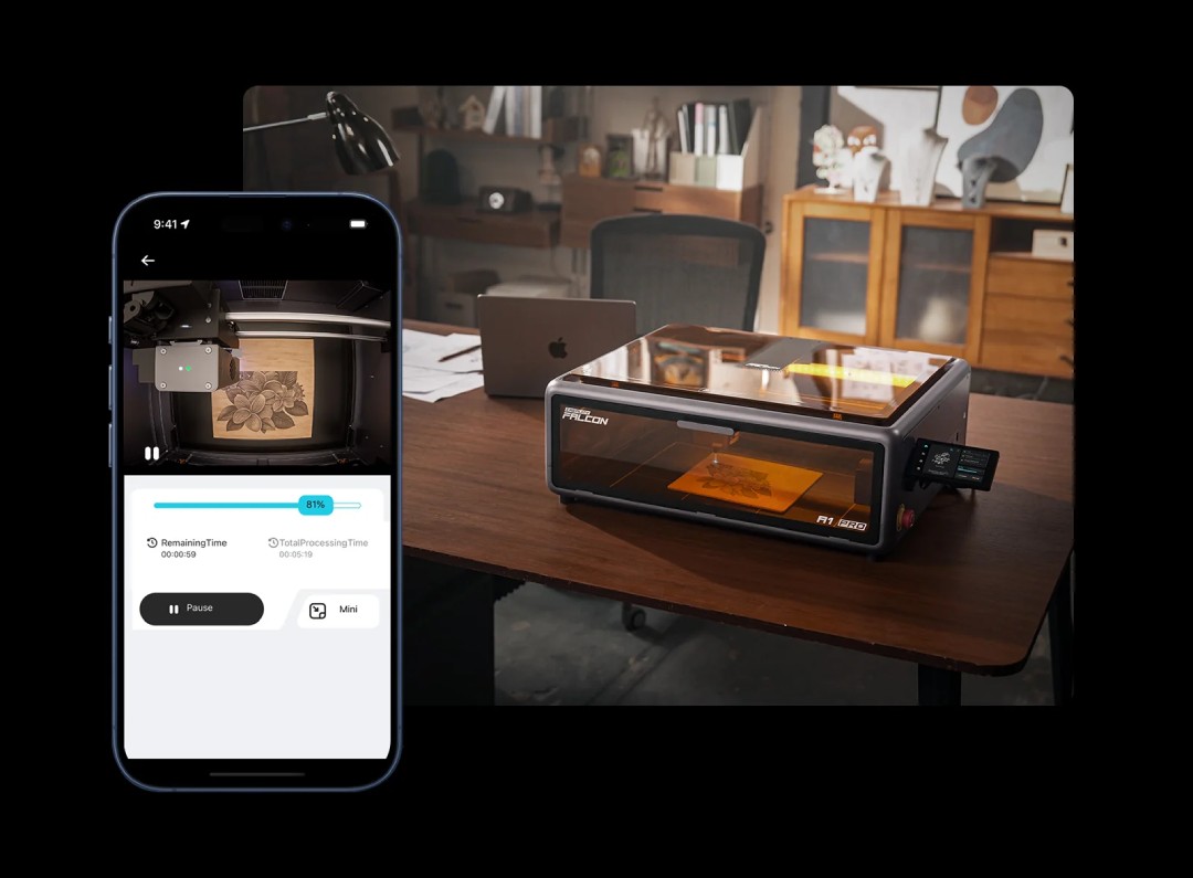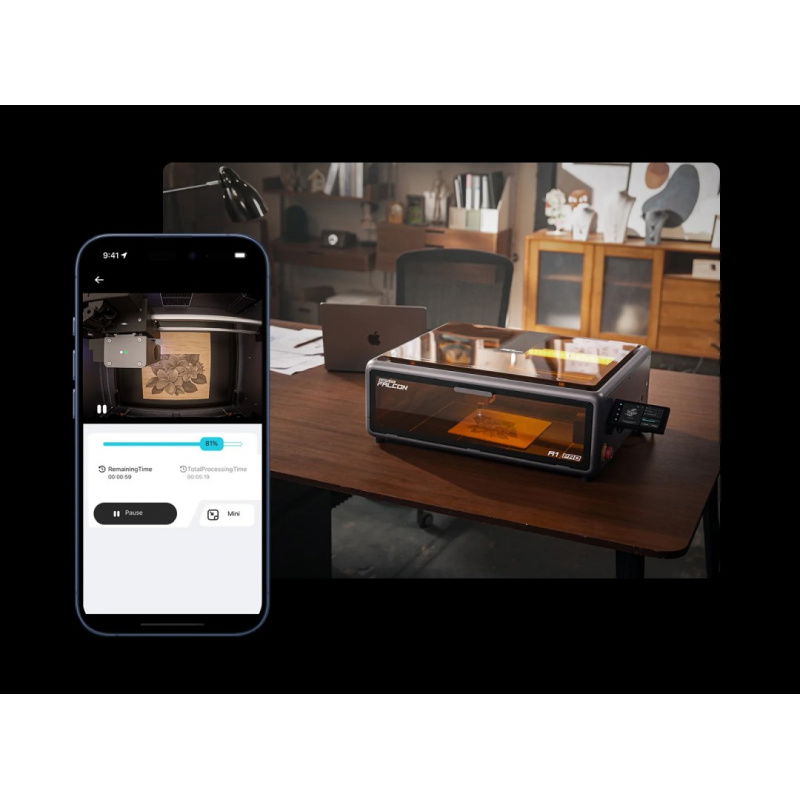 The manufacturer has designed a dedicated Falcon Design Space platform to operate the device, guiding the user through the entire process—from design, through settings, and finally engraving. Thanks to ready-made templates, intelligent prompts, and automatic parameter configuration , even beginners can achieve satisfying results without tedious testing. The application also works with popular LightBurn and LaserGRBL software, ensuring full compatibility with numerous file formats. It's not just a tool, but a complete creative ecosystem that supports the development and monetization of projects.