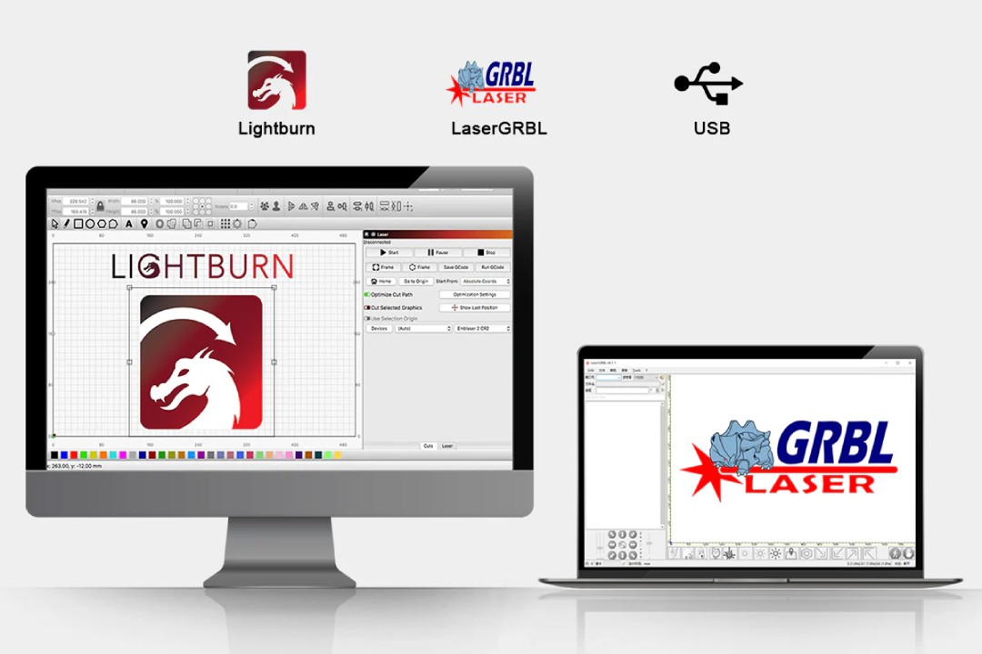 The device is fully compatible with popular design and engraving programs like LaserGRBL and LightBurn , allowing for complete creative freedom. The software supports a wide range of file formats, including .lbrn, .bmp, .jpg, .png, and .gcode , allowing engraving of designs created in other graphics programs. Thanks to seamless integration with Windows, macOS, and Linux operating systems, the Two Trees TS5 is very easy to use and customize.