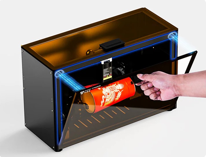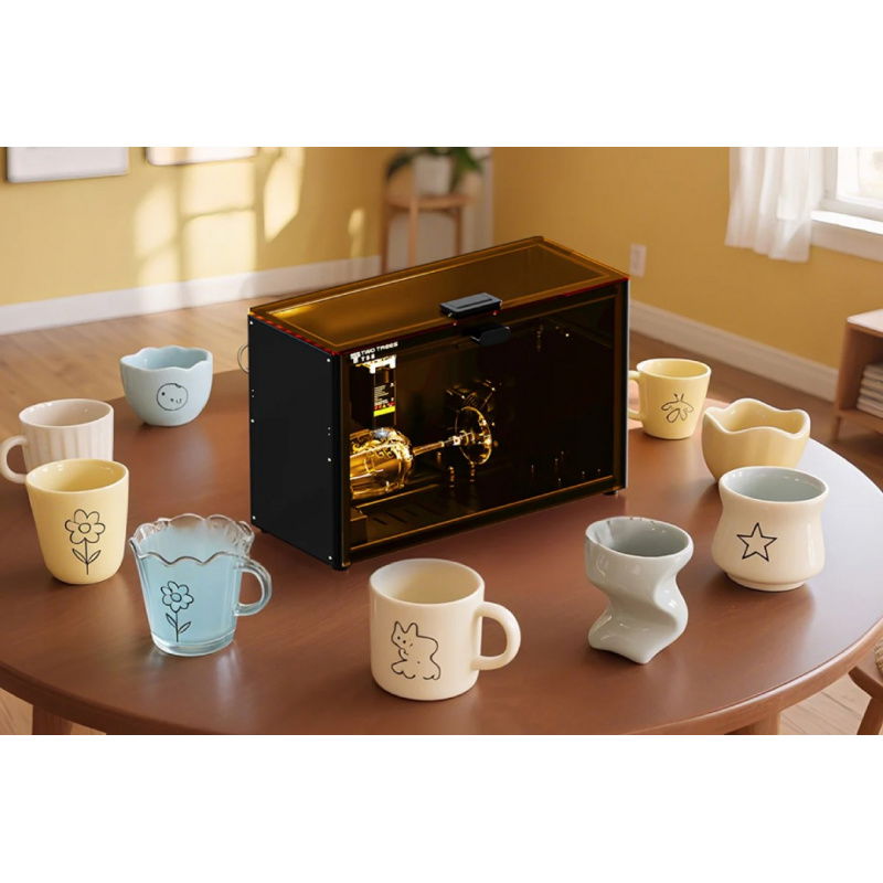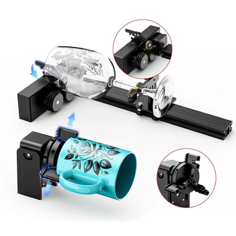 The TS5 features a 4-in-1 rotary module that allows for precise engraving on a wide range of items, from glasses to rings . Each mode is easy to install and adapted to a specific surface type:
