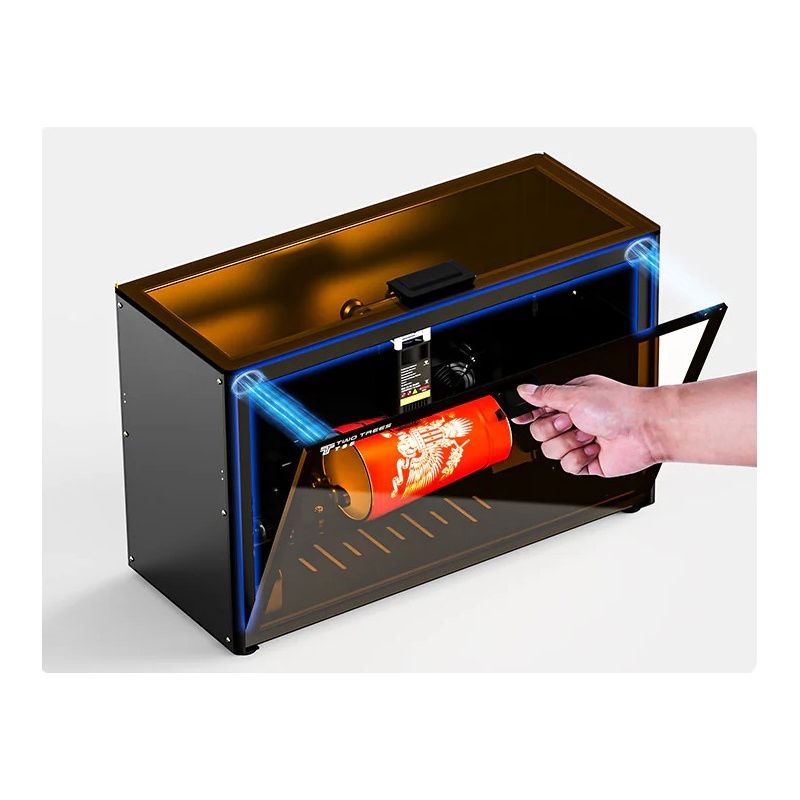 The Two Trees TS5 is the first enclosed 4-in-1 laser engraver of its kind, allowing for operation in various modes without the need to rebuild the entire machine. With a 7W laser power and a spot size of just 0.035 x 0.1mm , the device delivers extremely high precision engraving on materials such as stainless steel, glass, wood , leather, and ceramics . A working area measuring 249 x 123 x 123mm allows for marking both small and larger, irregularly shaped objects. The enclosed housing with a built-in smoke and dust filtration system protects the user and ensures a clean work environment, even in a home environment. A large transparent window with a blue light filter protects eyes while allowing monitoring of engraving progress. The device is 95% factory-assembled – ready to use almost right out of the box . It supports the most popular file formats and operating systems, and with Wi-Fi, USB, and TF card support, integration with a computer or local network is quick and convenient. The Two Trees TS5 is the ideal tool for anyone looking for an efficient, secure, and flexible engraving solution—from hobby to light production.