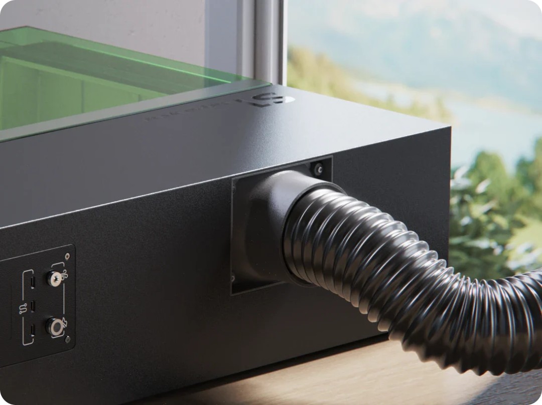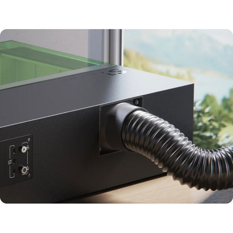 A built-in air cooling system and smoke extraction ensure stable laser operation even during extended engraving or cutting sessions. An optimized ventilation system effectively removes dust, smoke, and other contaminants generated during material processing, resulting in better-quality results and longer optical component life. The device can also be paired with an optional external air purifier , significantly improving comfort and safety of use in enclosed spaces.