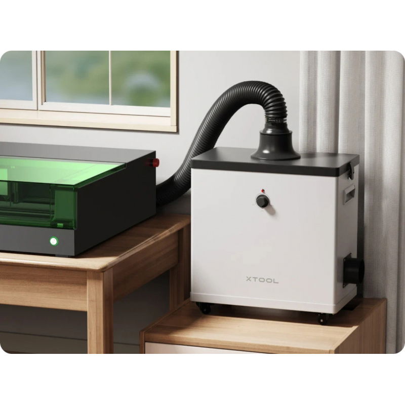 The integrated exhaust extraction system effectively removes smoke, particles, and vapors generated during engraving and cutting. Compatible with a dedicated air purifier, the device ensures safe and comfortable working conditions even in enclosed spaces.