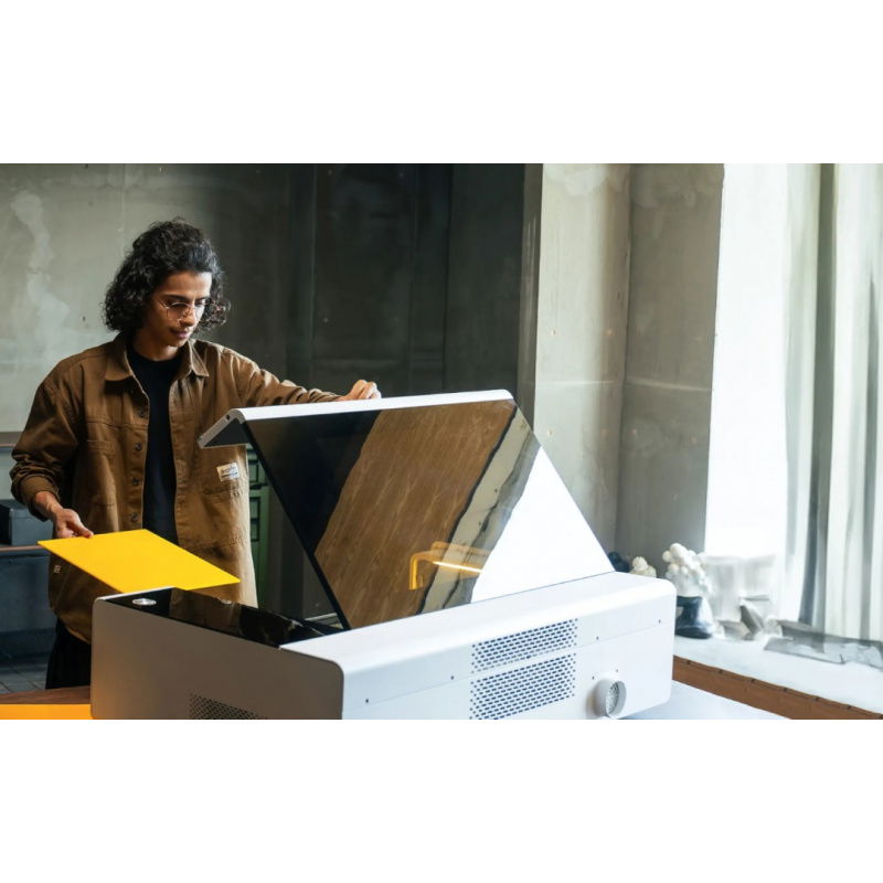 | Supported materials | Cuts: wood, acrylic, fabric, leather; engraves: metal, glass, bamboo, ceramics, 300+ compatible materials |