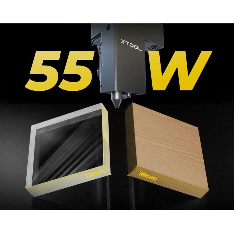 The xTool P2S takes performance to a new level. With 55W of power , speeds up to 600mm/s , and a 600 x 305mm work area, you'll complete more projects in less time. Additionally, the autofocus system, laser path optimization, and Smart Fill camera minimize setup time. The P2S achieves up to 500% greater cutting performance compared to popular 40W diode lasers , as confirmed by the manufacturer's tests.